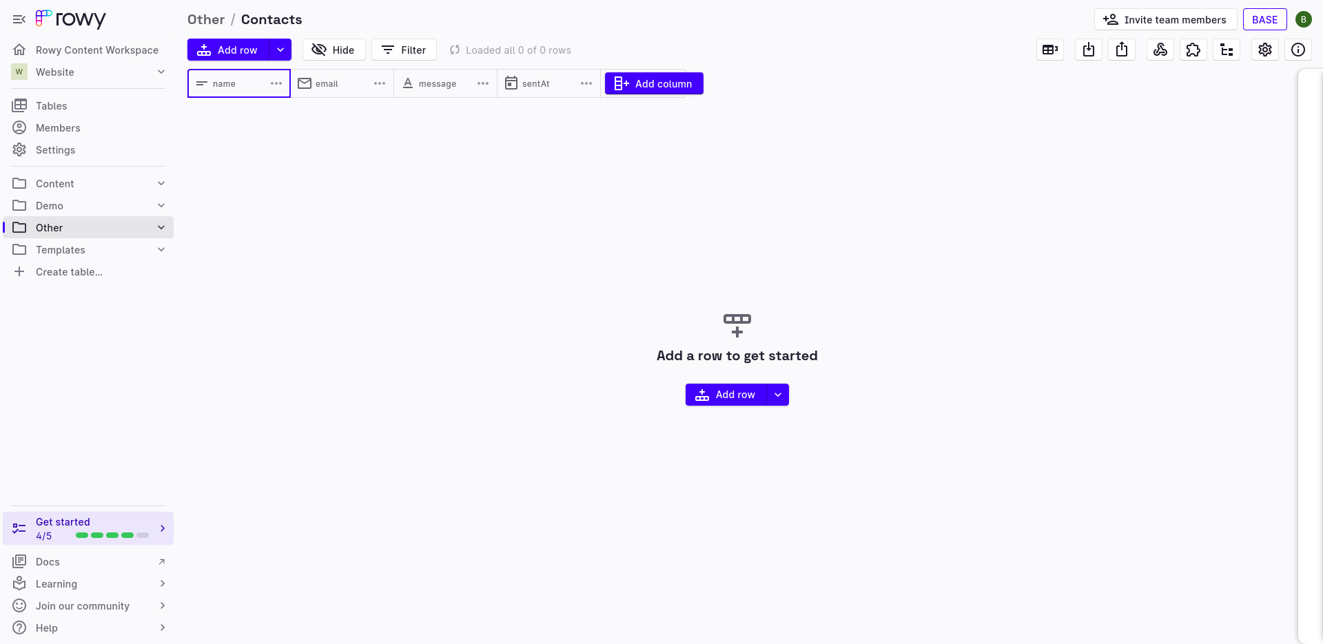 Now our backend is ready, we need to save the contact data when the contact form is submitted client-side. Fortunately, Rowy seamlessly integrates with the Firebase API.
